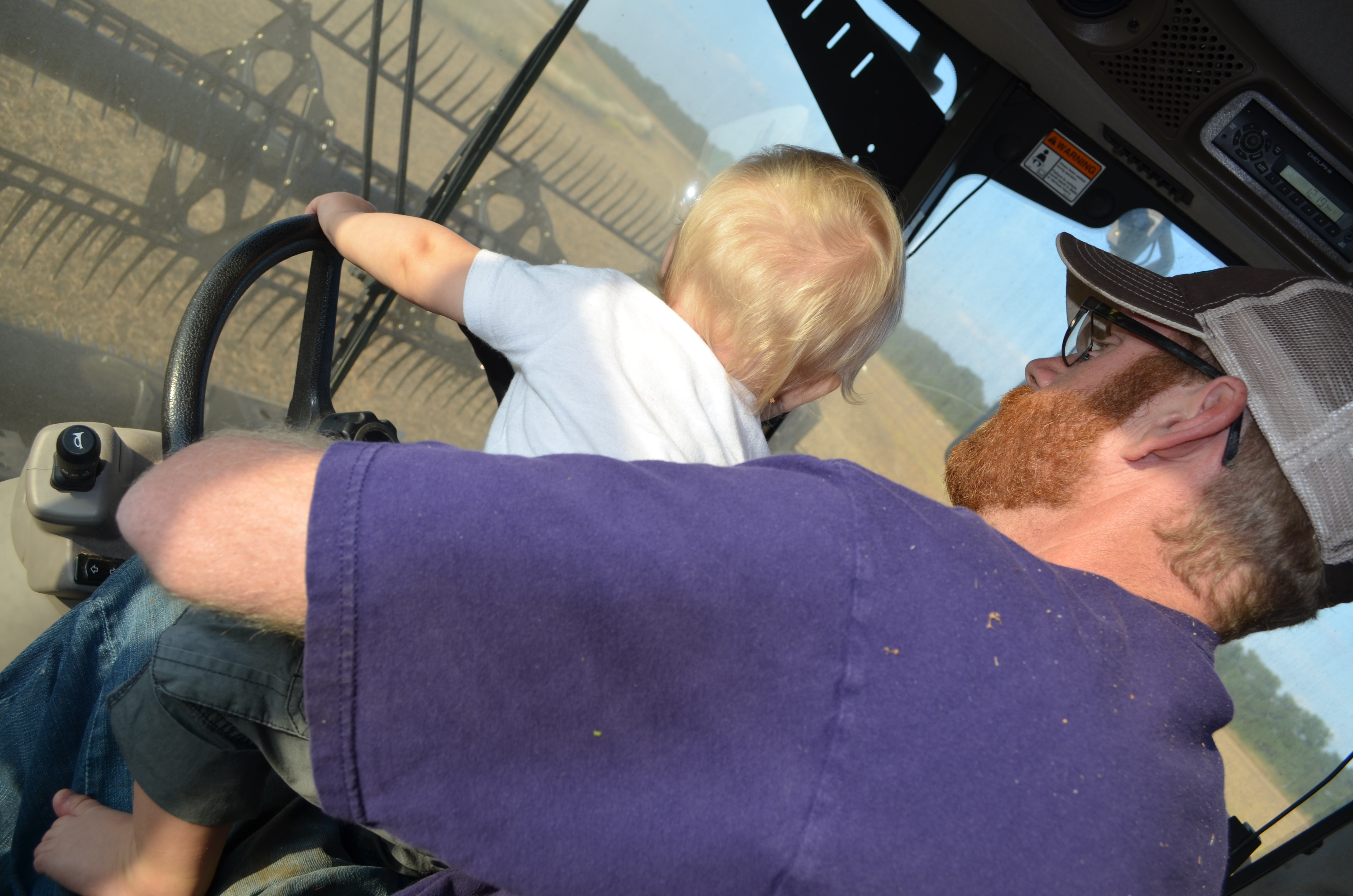 This little boy enjoys spending time with his daddy–especially if it involves buttons to push, levers to pull, horns to honk, and wheels to turn.